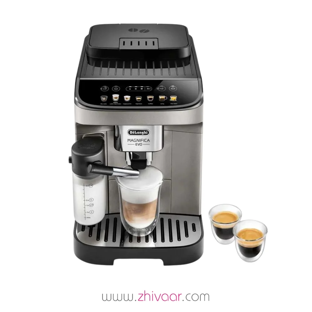 برند دلونگی یکی از برندهای پیشگام در زمینه تولید انواع قهوه ساز و اسپرسو ساز است. این برند پیشگام توانسته است محصولاتی با کیفیت فوق العاده و تمام اتومات را وارد بازار کند. اسپرسو ساز دلونگی اتوماتیک مدل ECAM 290.81 TB با استفاده از فشار بخار ۱۵ بار خود و با کمک توان ۱۴۵۰ واتی خود میتواند بهترین دسرها و نوشیدنیهای گرم را تهیه کند.