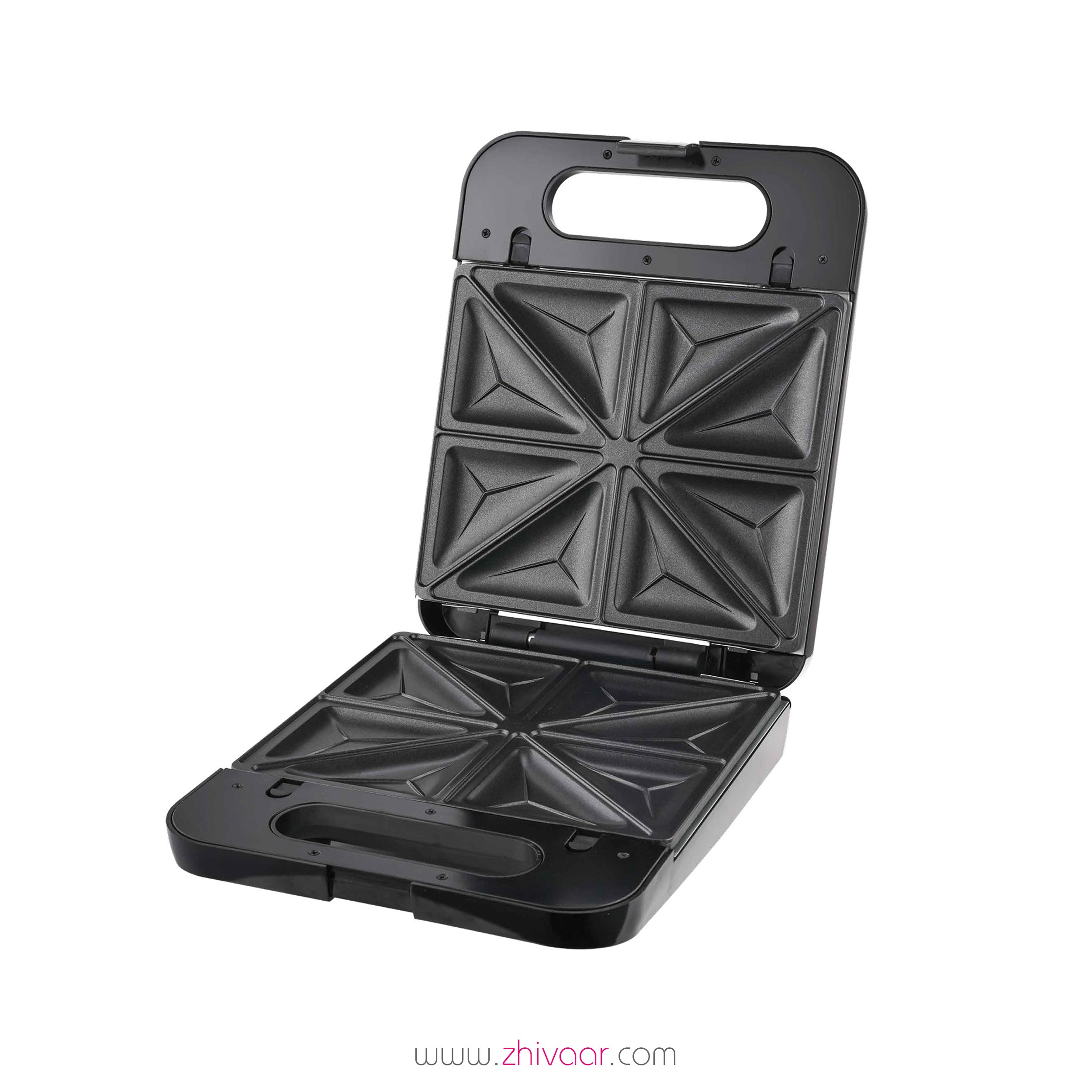 - صفحات مثلثی (Sandwich Plates): این صفحات مخصوص نان تست هستند. هر صفحه به 4 قسمت تقسیم شده که با قطر کردن نانها، در هر بار پخت 8 ساندویچ مثلثی خوشمزه به شما تحویل میدهد.