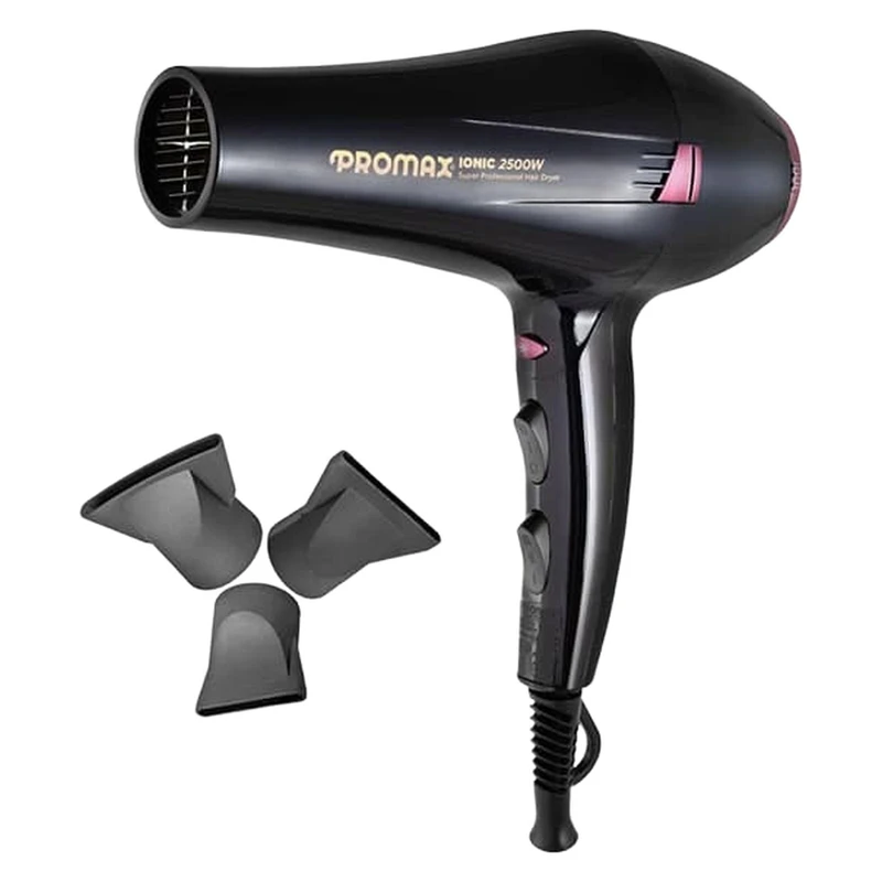 سشوار پرومکس مدل 7250 سشواری حرفهای و مناسب کار در آرایشگاه است که دارای موتور 2500 وات AC، دکمهی فناوری تولید یون و سه متمرکز کنندهی هوا است. این مدل سشوار، قوی ترین سشوار سری 7000 محسوب می شود و حرارت بالای آن به همراه قدرت پرتاب بالای آن میتواند این محصول را به یکی از ایده آل ترین سشوارهای مخصوص براشینگ تبدیل کند. فناوری تولید یون در این سشوار به صورت خودکار است و با روشن شدن دستگاه شروع به کار می کند. این یونها با باد سشوار خارج میشود و پس از برخورد به موها الکتریسیته ساکن روی آنها را از بین میبرند. بهاینترتیب وز شدن مو کمتر اتفاق میافتد و حالت دادن به موها هم راحتتر میشود. این سشوار حرفهای دارای سه متمرکز کنندهی هوا با اندازههای مختلف است که با توجه به نیاز میتوان از یکی از آنها استفاده کرد. فیلتر ورودی هوا را میتوان به شکل چرخشی جدا کرده و آن را شست. بهاینترتیب علاوه بر اینکه قدرت باد سشوار حفظ میشود، عمر آن هم افزایش مییابد. برای حالت دادن و خشککردن موها میتوان سرعت و حرارت باد را روی مقدار دلخواه تنظیم کرد. برای این کار باید از دکمههای روی دسته استفاده کرد که دو حالت سرعت متوسط و زیاد و سه حالت حرارت سرد و گرم و داغ را فراهم میکنند. از دیگر ویژگیهای سشوار پرومکس مدل 7250 میتوان به سیم 3 متری و حلقهی آویزان کردن آن اشاره کرد که برای استفادهی در مکانهایی مانند سالنهای آرایشی ضروری هستند.