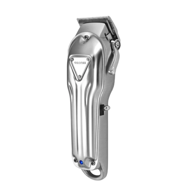ماشین اصلاح حرفه ای پرومکس مدل 2828 یک کلیپر قوی برای اصلاح سر و صورت می باشد که با تازگی به بازار عرضه شده است. این محصول با بدنه آلومینیومی ظاهر بسیار جذابی دارد و به کمک یک چراغ می توان به میزان شارژ آن پی برد. در صورتی که دستگاه به اندازه کافی شارژ داشته باشد رنگ چراغ آبی و در غیر این صورت به صورت چشمک زن قرمز خواهد بود. همچنین باتری این مدل 2500 میلی آمپر است که با 180 دقیقه شارژ به مدت 240 دقیقه زمان کارکرد خواهد داشت. یکی از مهم ترین ویژگی های ماشین اصلاح پرومکس مدل 2828 اهرم پیوسته می باشد. این اهرم بصورت پیوسته قابلیت تنظیم ارتفاع را دارد و مانند سایر دستگاه ها به صورت دنده ای نیست. در کنار آن این مدل 8 عدد شانه اصلاح از اندازه 3 میلی متر الی 25 میلی متر داخل جعبه دستگاه قرار گرفته که هر اندازه ای را برای اصلاح میسر می سازد.